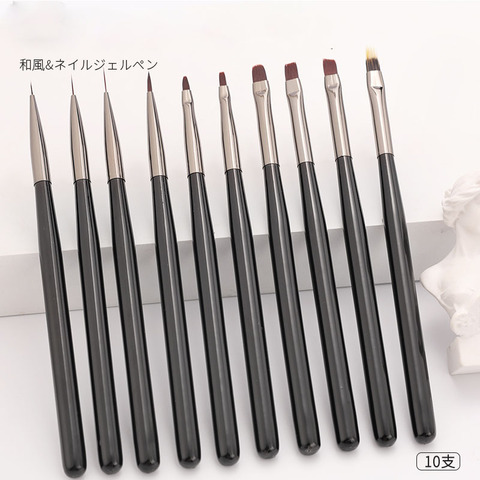 Personalização 10 pcs madeira alça nail art escova design liner set 3d ar nylon unha escova conjunto